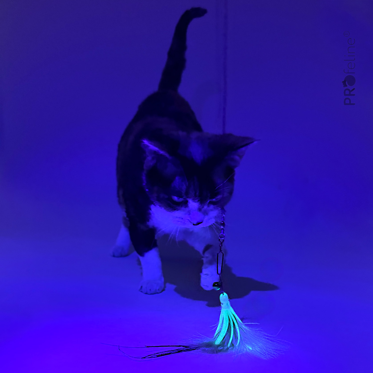 The mysterious glow combined with fluttering feathers instantly awakens your cat’s hunting instinct – even in the most relaxed indoor cats.